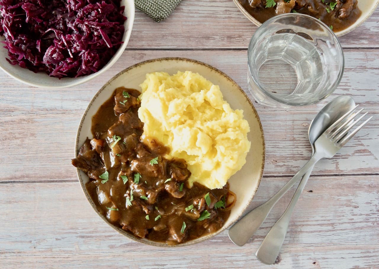Hachee combineert perfect met aardappelpuree, rode kool en stoofpeertjes. Een klassieke en smaakvolle combinatie voor een heerlijke maaltijd! - Welk vlees is het beste voor hachee?