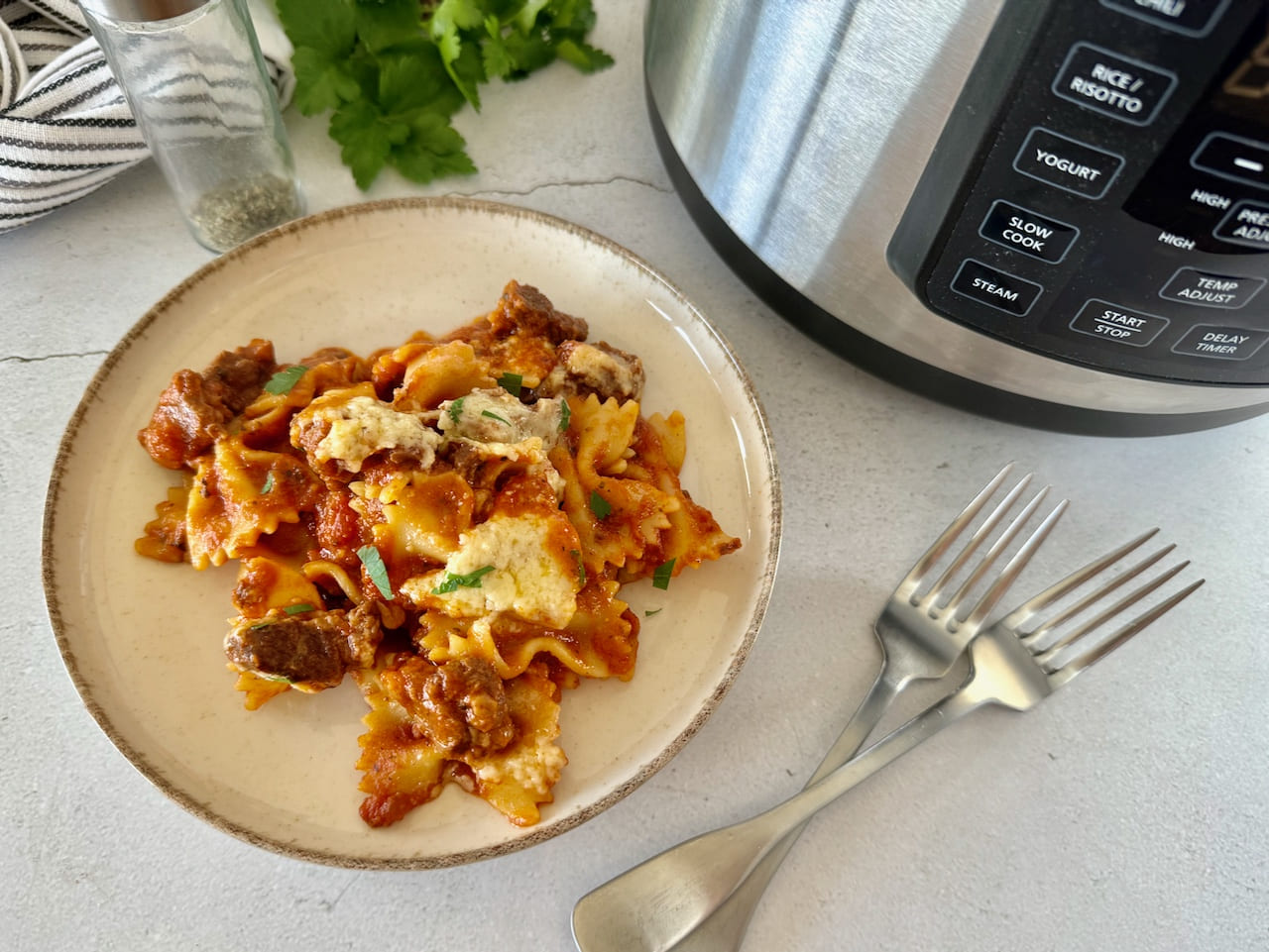 Dat de slowcooker ideaal is om stoofgerechten te bereiden dat is inmiddels wel bekend. En in Italië maken ze de meest geweldige pastasauzen, niet met gehakt, maar met rundvlees. Die laten ze lekker de hele dag sudderen…. Je voelt het vast al aankomen, maar daarvoor is de slowcooker dus ook heel geschikt. Deze blogpost gaat dus over een heerlijke pasta met tomaten rundvlees saus uit de slowcooker.
