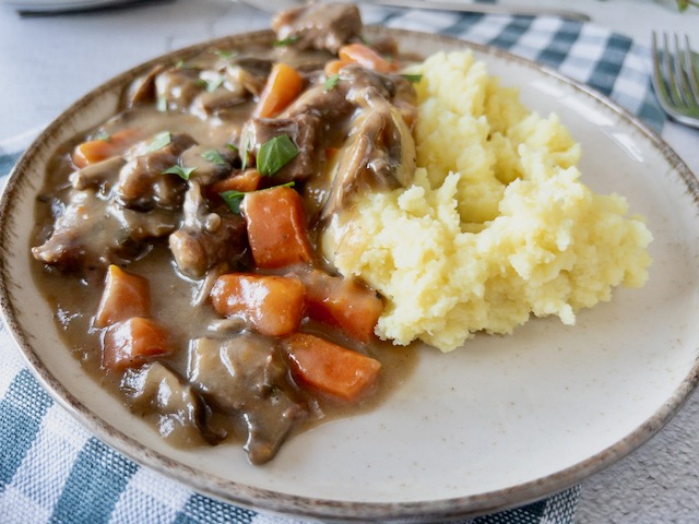 Iedereen heeft zo zijn eigen recept voor runderriblappen en op dit blog staan er ook al een aantal zoals deze rundvlees stoofschotel. Maar om het je extra makkelijk te maken, maak ik voor dit recept gebruik van soep. Door champignonsoep te gebruiken als vocht bij de riblappen, sla je twee vliegen in één klap. Je hebt al een smaakmaker én je hoeft geen extra vocht toe te voegen. Ideaal dus. Daarnaast leent dit recept zich ook uitstekend voor eigen variaties. Ik kies voor wortel en champignons erbij, maar je zou ook wat bleekselderij, prei of (het laatste halfuur) diepvriesdoperwtjes kunnen toevoegen. Extra kruiden kan natuurlijk ook, een laurierblaadje wat tijm…. leef je uit!