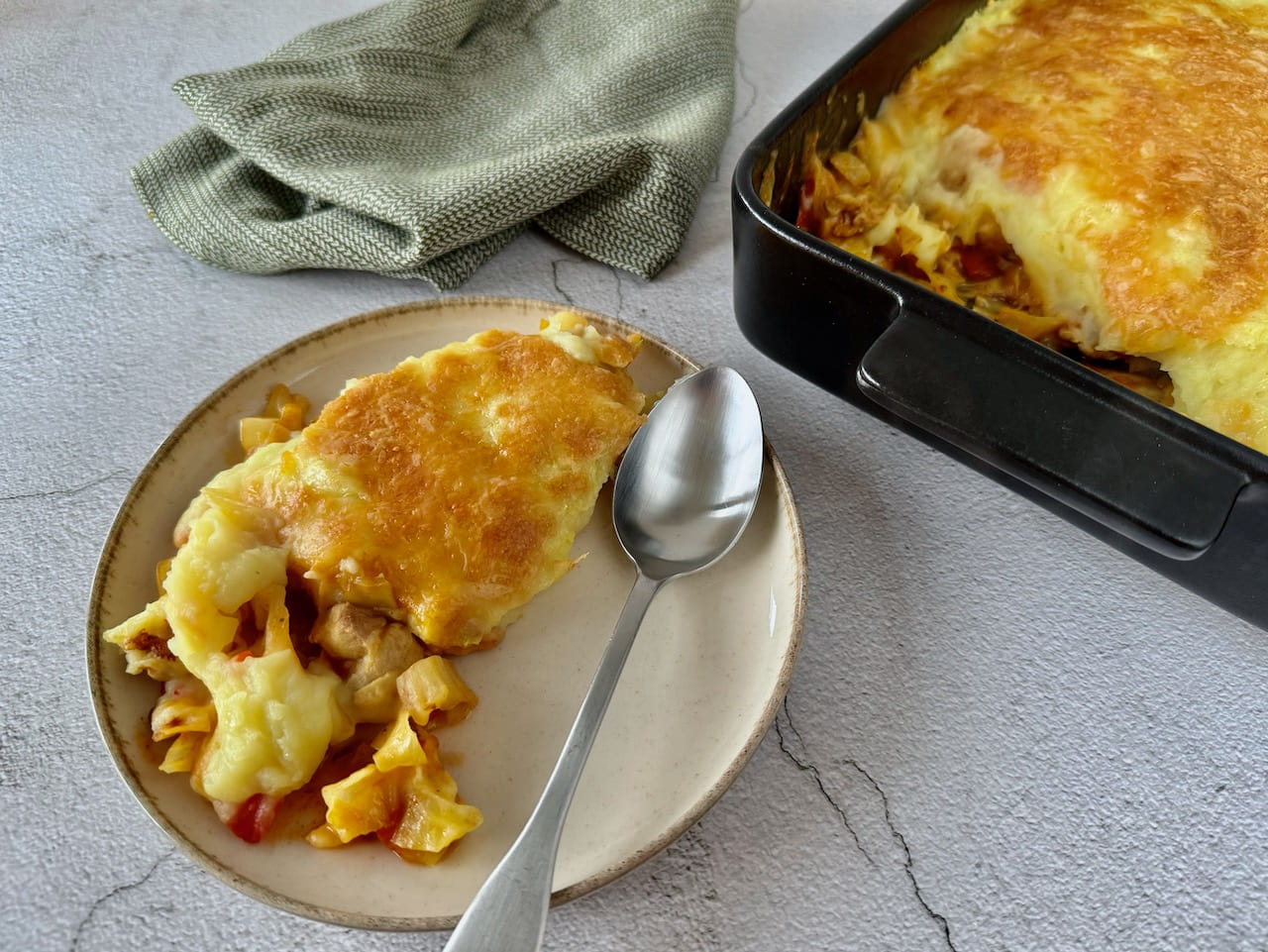 Deze kip spitskool ovenschotel zit vol smaak en door even een rode paprika er bij te snijden heb je gelijk ook wat extra kleur te pakken. Dat staat altijd wel gezellig op tafel vind ik. Je zet deze ovenschotel in 40 minuten op tafel. Maar je kunt er ook voor kiezen om hem eerder te maken, in de koelkast te bewaren en dan later in de oven op te warmen. Dat is lekker makkelijk als je een drukke dag voor de boeg hebt.